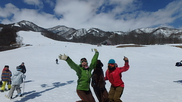 初滑りの次女には、この『春休みツアー』中にBC予定の為、今日皆さんと一緒に滑れた事に感謝。