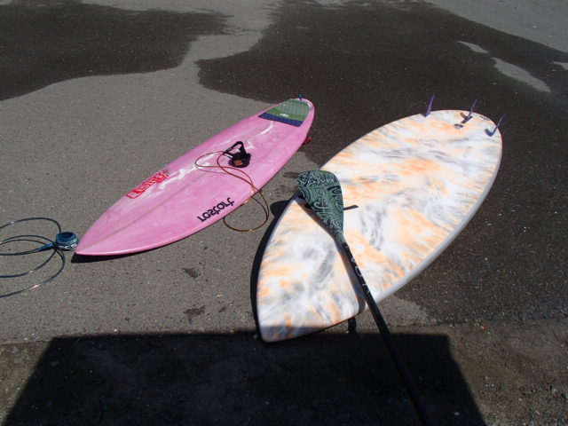 サーフして、SUPして! 特にSUPの時は貸切&ご機嫌な波で、ロングライド含め『一緒に行ったS君には、かなりの練習日より。』
