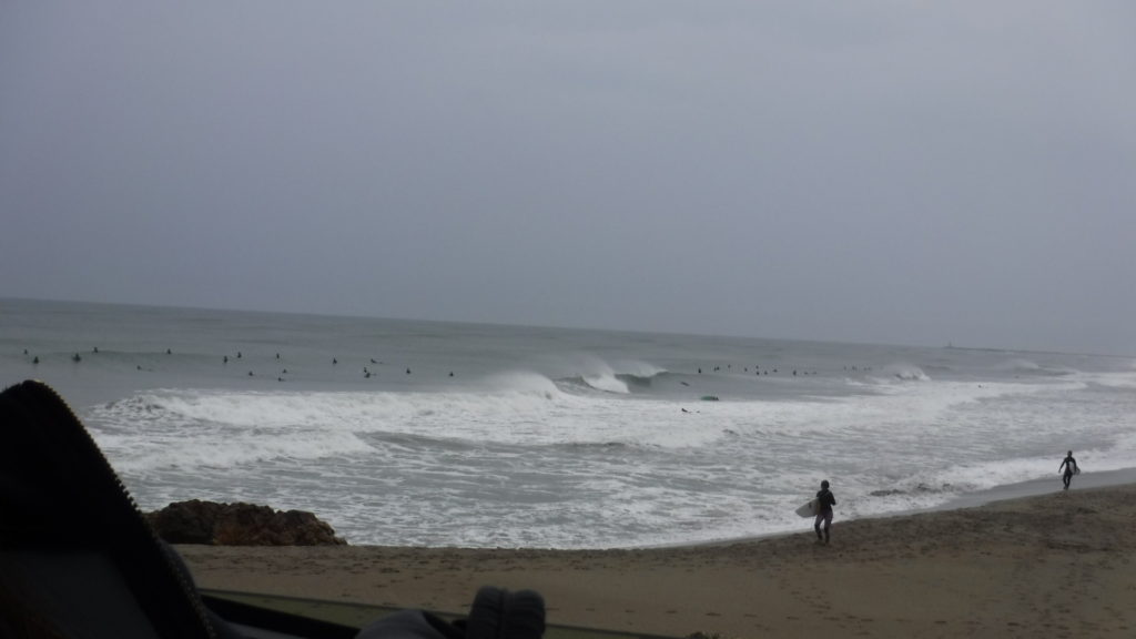 天気はどうかな~!? 海つけば、早朝の波情報とは全く違い、よもやのサイズUP!!