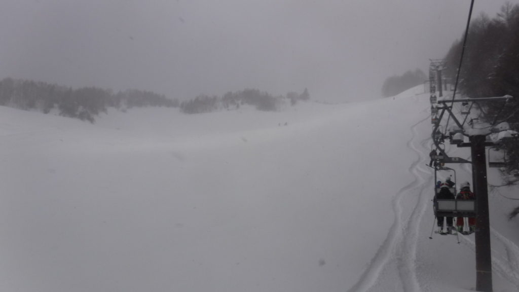 下の方のゲレンデで、パウダーRUN含めて足慣らしして、最上部のリフトは並んでみました(^^♪