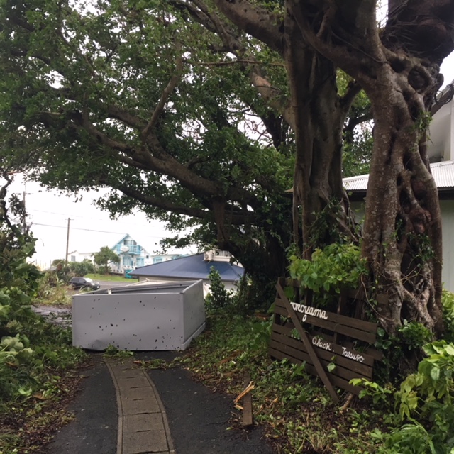 他にも、家屋が半倒壊していたり、屋根が飛んでいたり・・・・・。