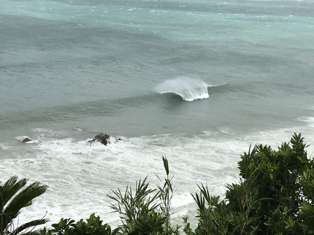 これ、普段波は割れてない場所でこのサイズ。。。