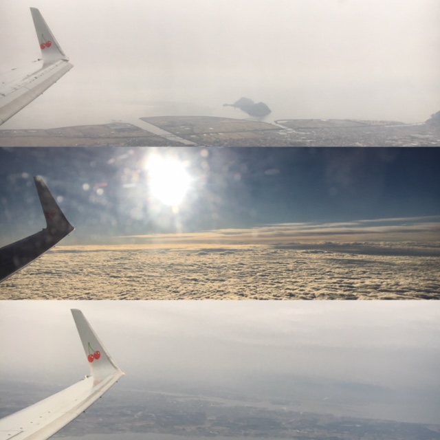 愛知~四国~九州(雲多く・上空はいい天気) 残念ながら桜島はうっすら・・・・。