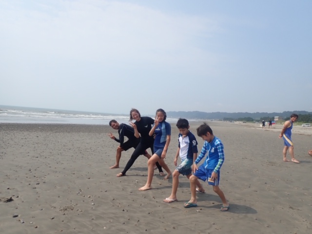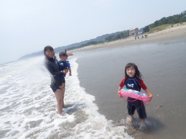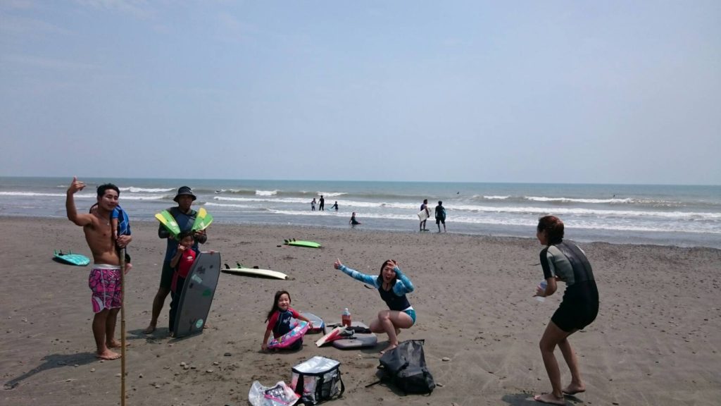 こちらは、サーフィン・レッスン & 波乗り家族(父母&子供3人)