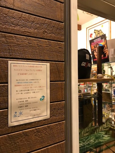 海・山等の店外活動(スクール・レッスン・ツアー等)も全面休止・自粛します!