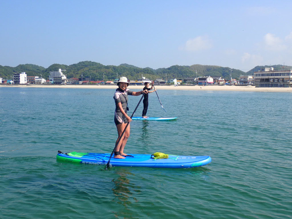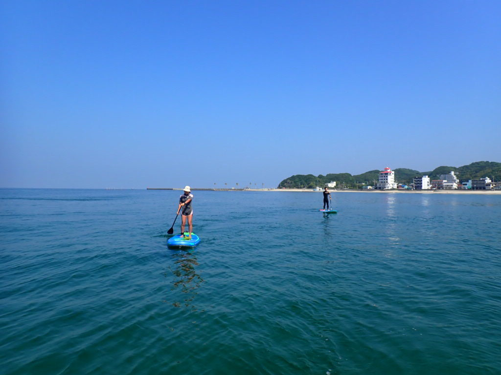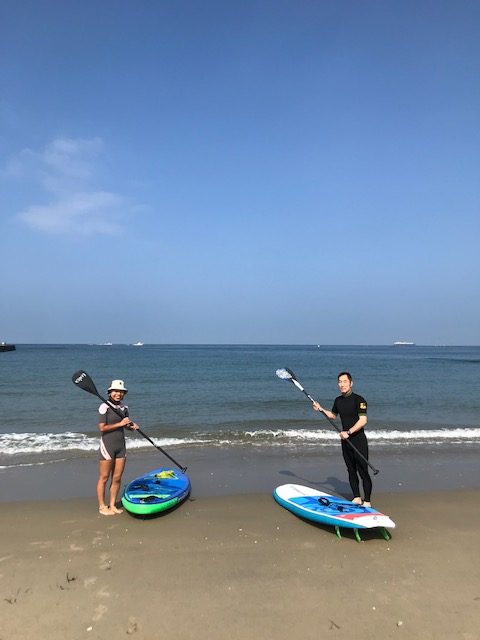 コロナ明けで、MYボードを手にした二人のSUPレッスンで海!
