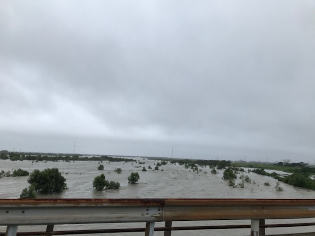 帰りの道中の川は、こんな風に増水中!!(朝より増水している。。)