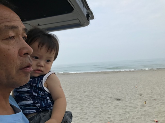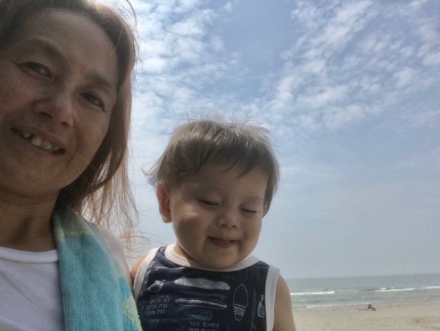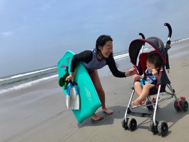 今日も三世代で海! サーフィン!!