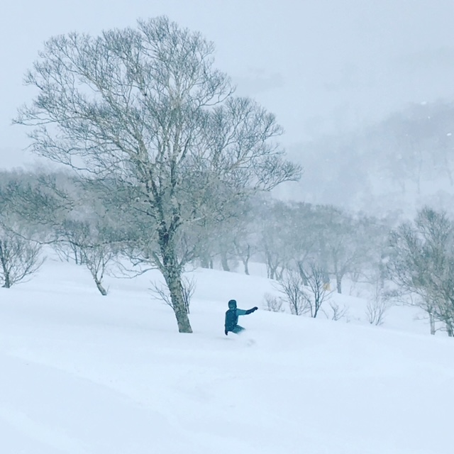 ちょっと視界も悪めの時間もあり、撮影よりも自分含めて久しぶりの新雪なので