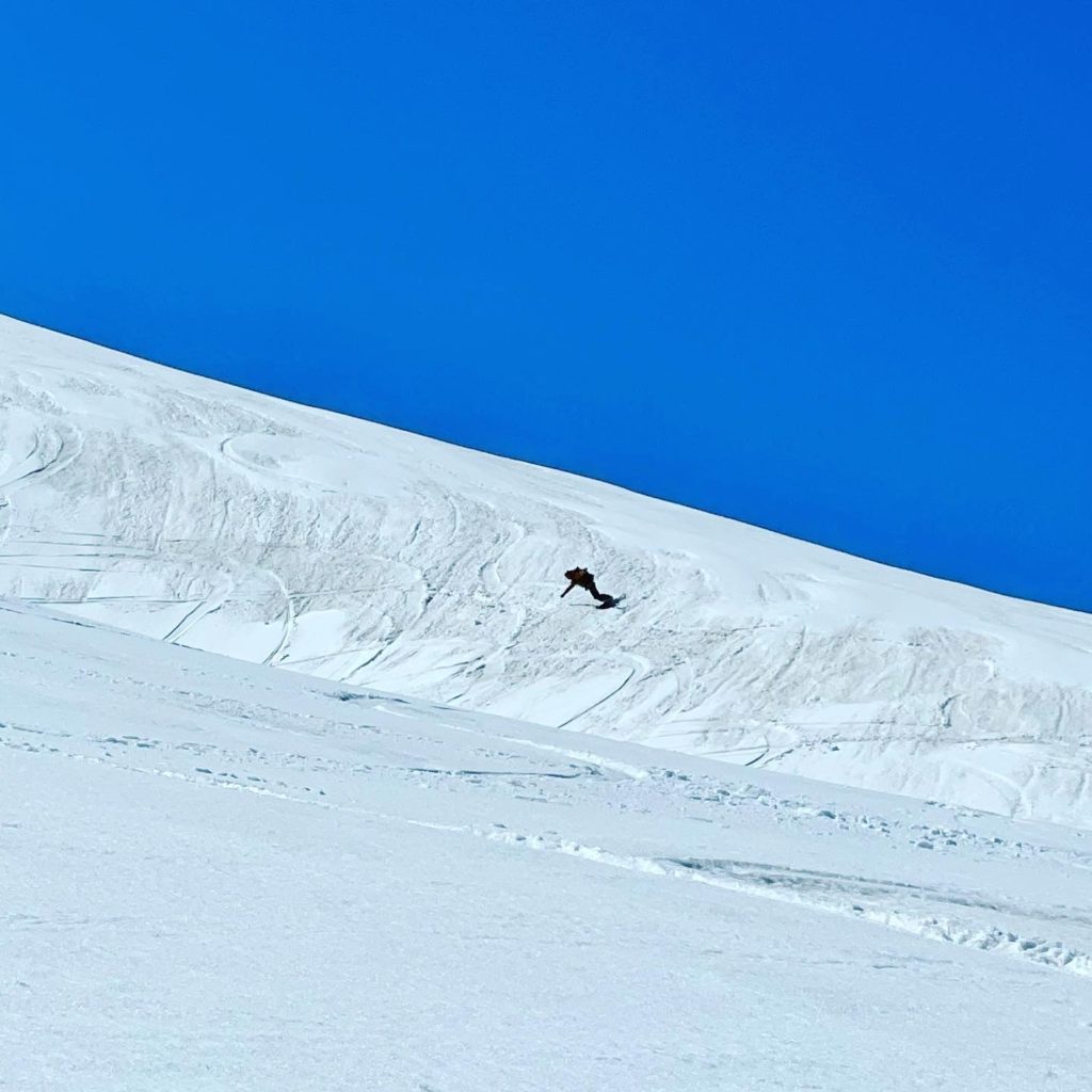 滑りこむバーンは、風もかわしてかなりのGOODコンディション
