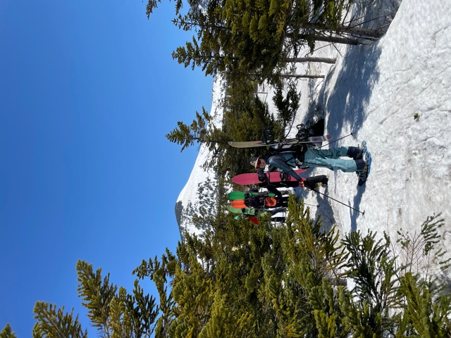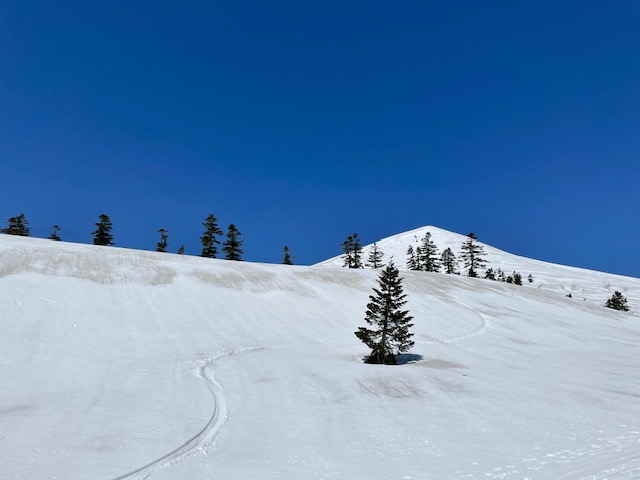 昨日滑ったラインを横目に見ながら更にハイクアップ