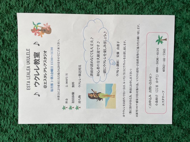 今日から開設の【ウクレレ教室/EstaLeaea Ukulele教室・初心者コース】入門