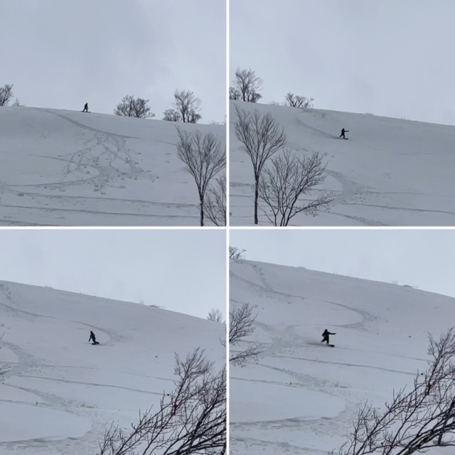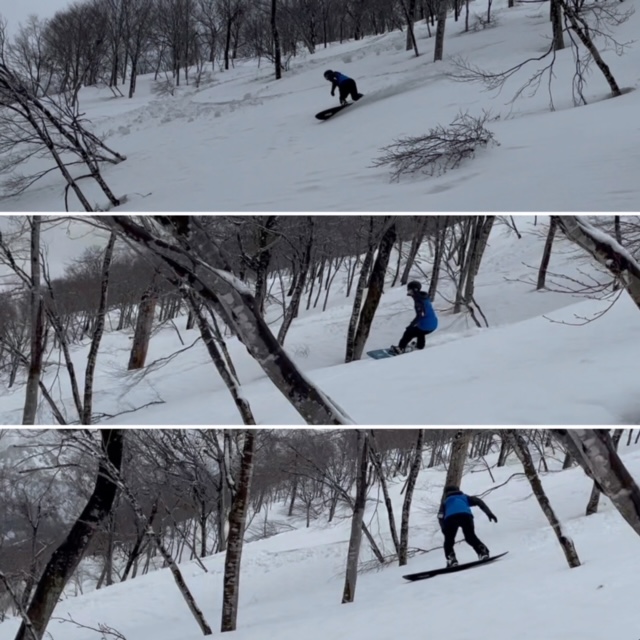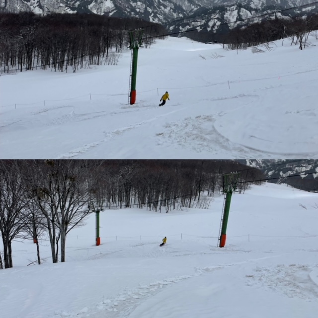 初日&北上するので、13時頃まで滑って天日干しして・・・移動