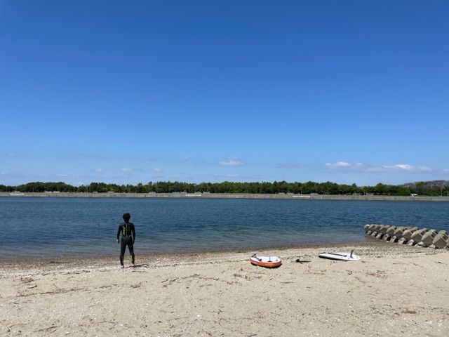 ※数年振りのSUPという事で、風もやや強めのコンディションなので