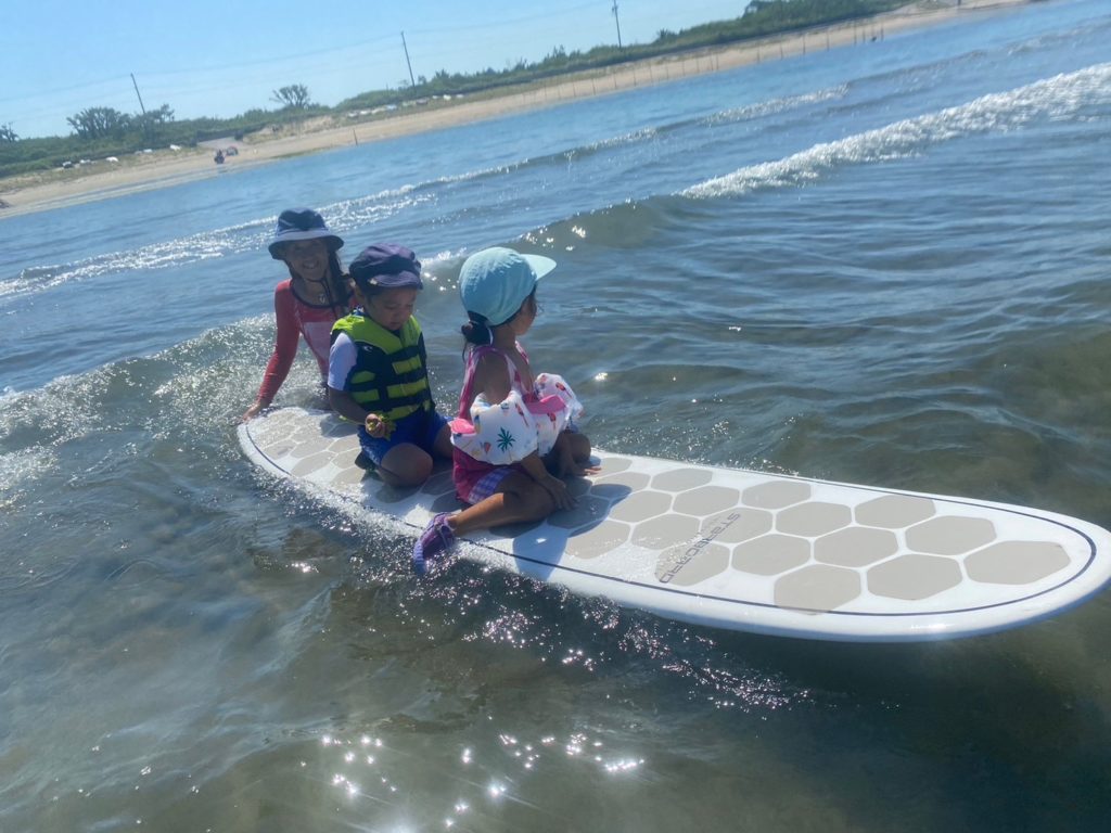 SUPして・・・SUPで小波も楽しんだり・・・して子供達と海遊びして