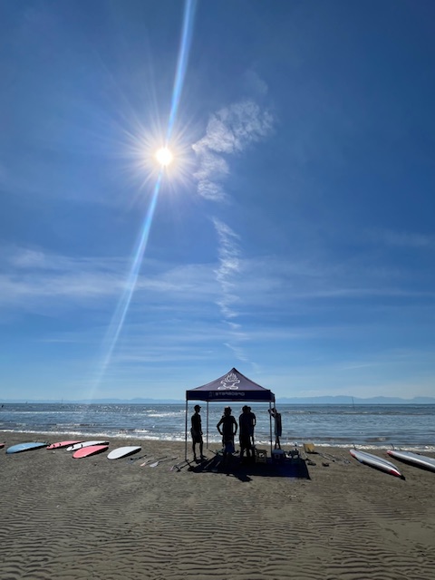 木陰の下・テントの下・海の家含めてSUP試乗会しながら・・・