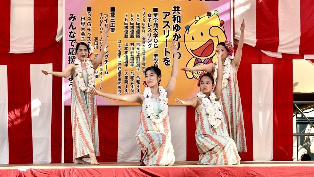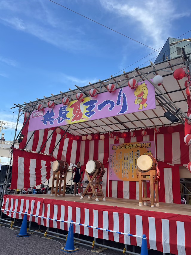 夕方からは、お店の地元/共和駅前にて『共長夏祭り/hula🌺で参加』