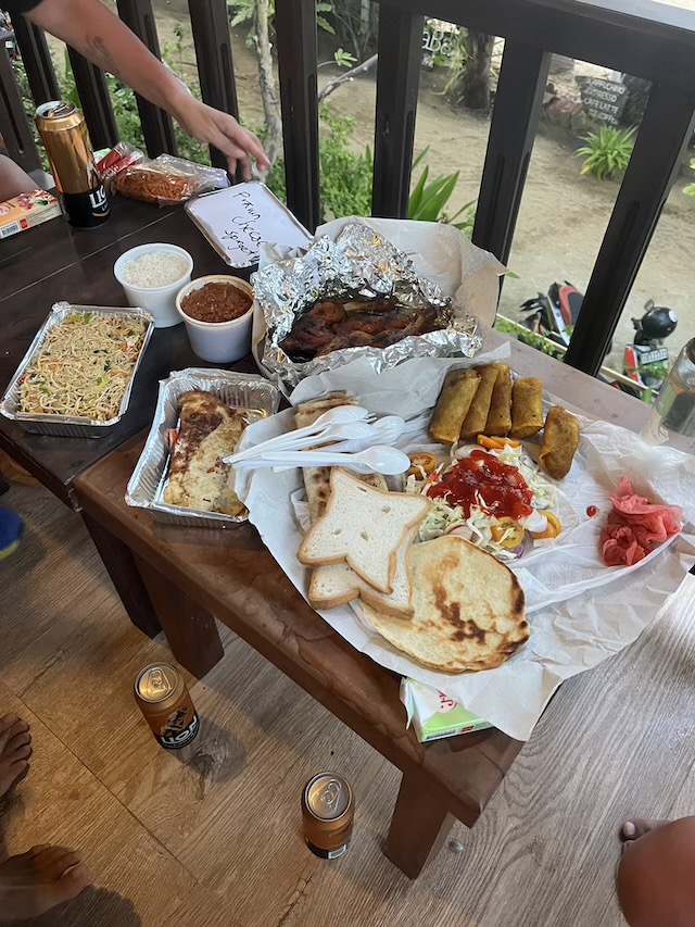 今晩は、色々と買い込み・宿のテラスで