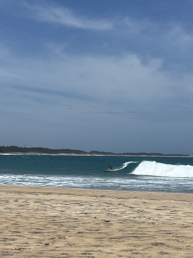良い波掴めば・・・かな〜りロングRIDEでビーチを歩いて戻ります