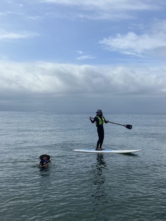 25年10月18日(土):リクエストにお応えして、SUPスクール&レッスン&孫守りで海!!