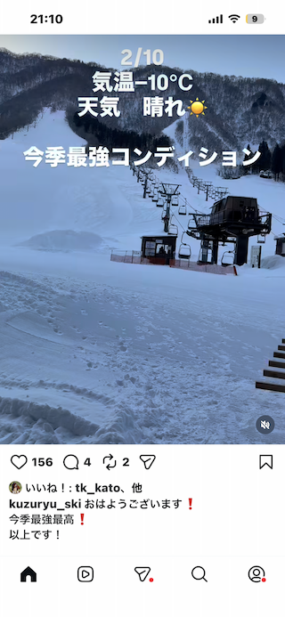 ※ゲレンデのSNS発信では、本日・・・今季・・・『最高最強コンディション